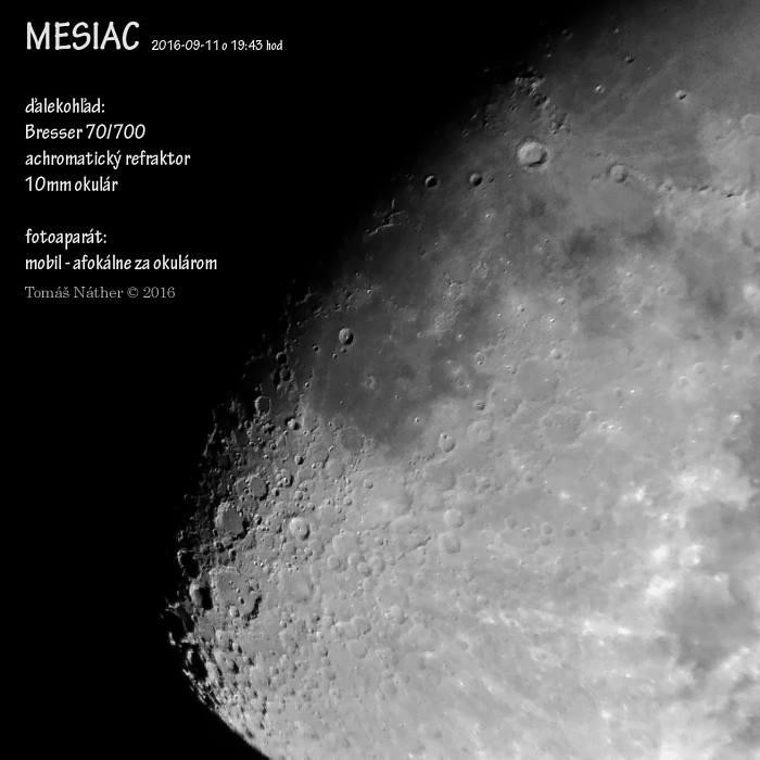 Od pozorovania hviezd, Mliečnej dráhy, padajúcich hviezd by sme sa aspoň na chvíľku mohli ešte pozrieť aj na nášho večného súputníka vesmírom - Mesiac. Keďže som tvor, ktorý sa o vedomosti a množstvo zážitkov rád podelí s okolím, zorganizoval som viackrát pozorovanie Mesiaca. Začalo to vo Valaskej v Základnej škole Jaroslava Simana